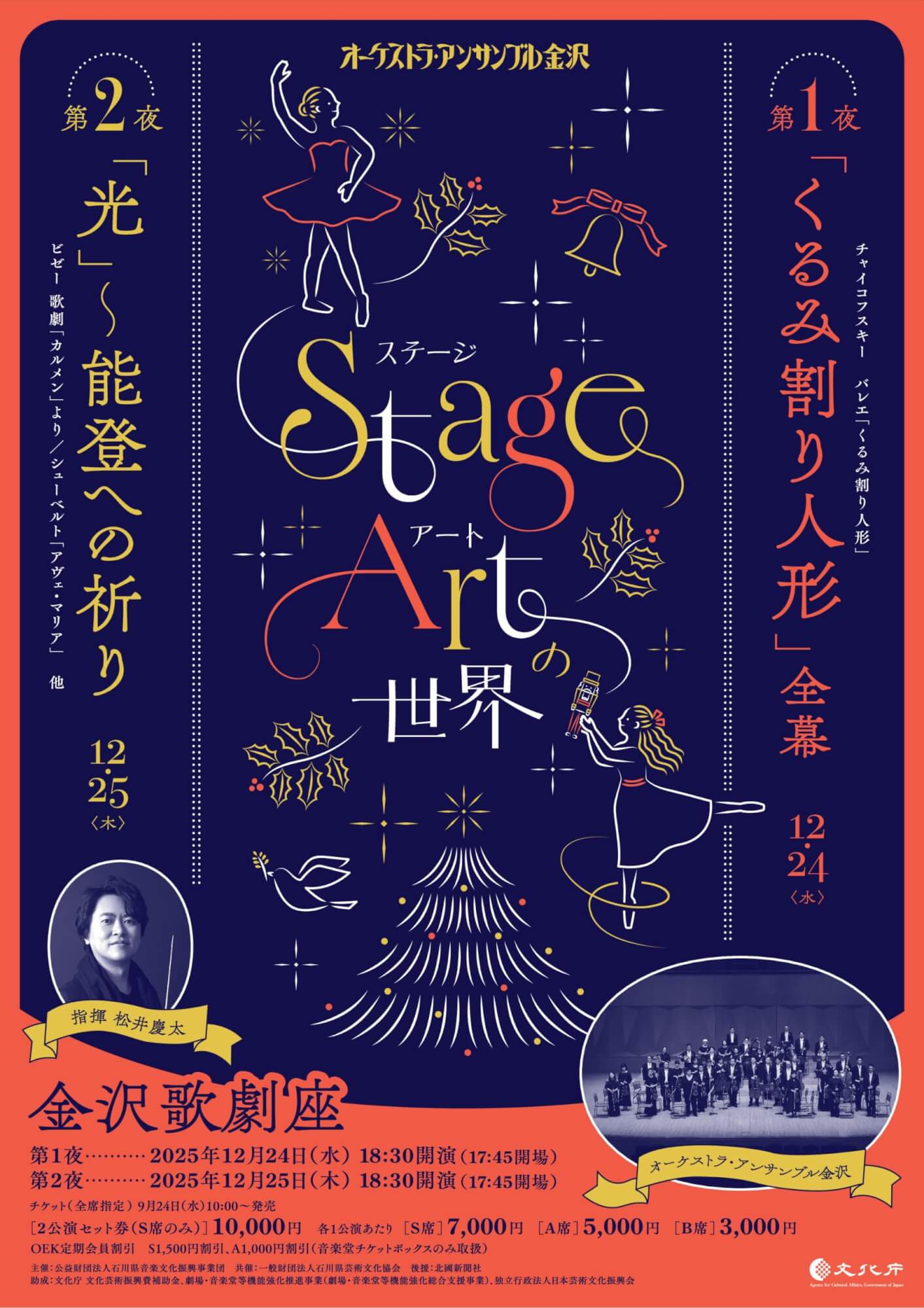 全席指定 S席7,000円 A席5,000円 B席3,000円 2公演セット券(12/24&25・S席のみ)10,000円 ・OEK定期会員S席1,500円,A席1,000円割引(音楽堂チケットボックスのみの取扱い) ・託児ルームあり(有料・12/14までに要申込 TEL 076-232-8111) |